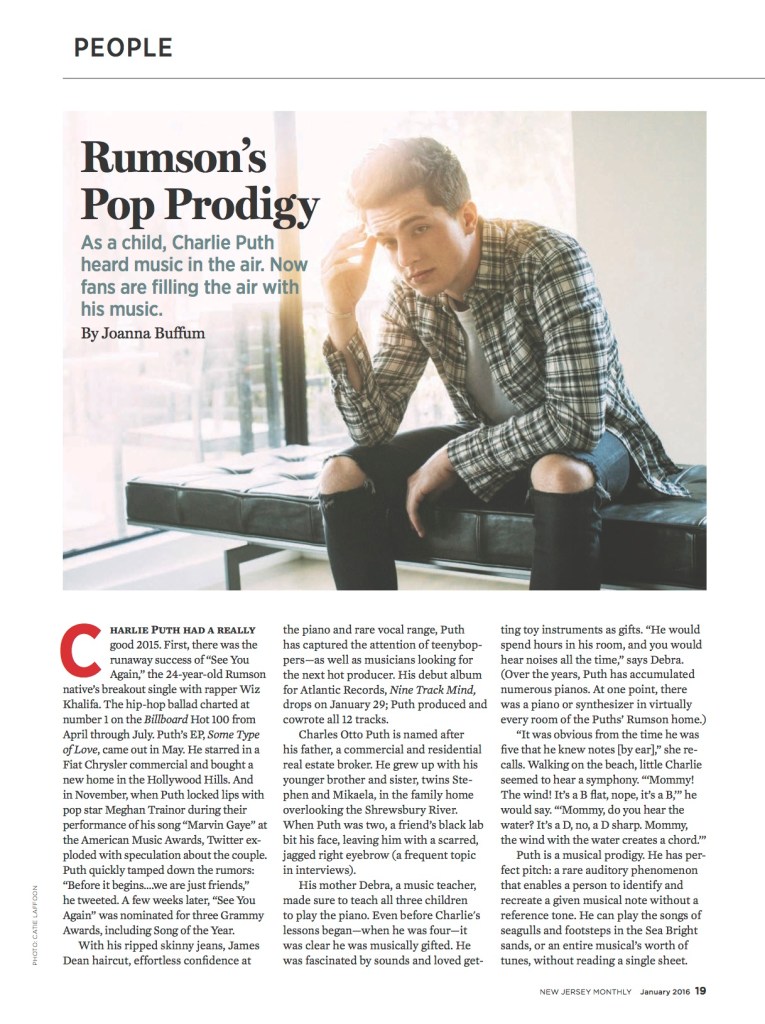 Charlie Puth: Rumson’s Pop Prodigy (NJ Monthly)