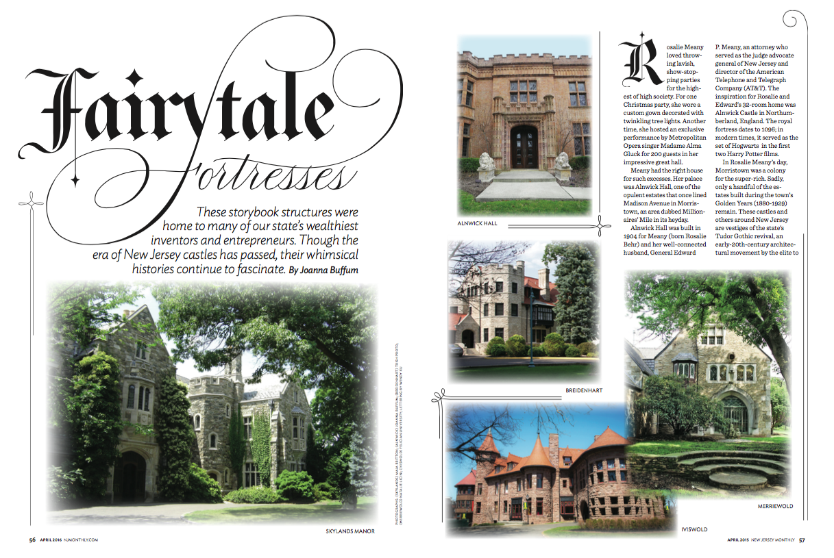 Another personal favorite and the result of a pitch. Joanna hopes to write a coffee table book someday about the castles of New Jersey.