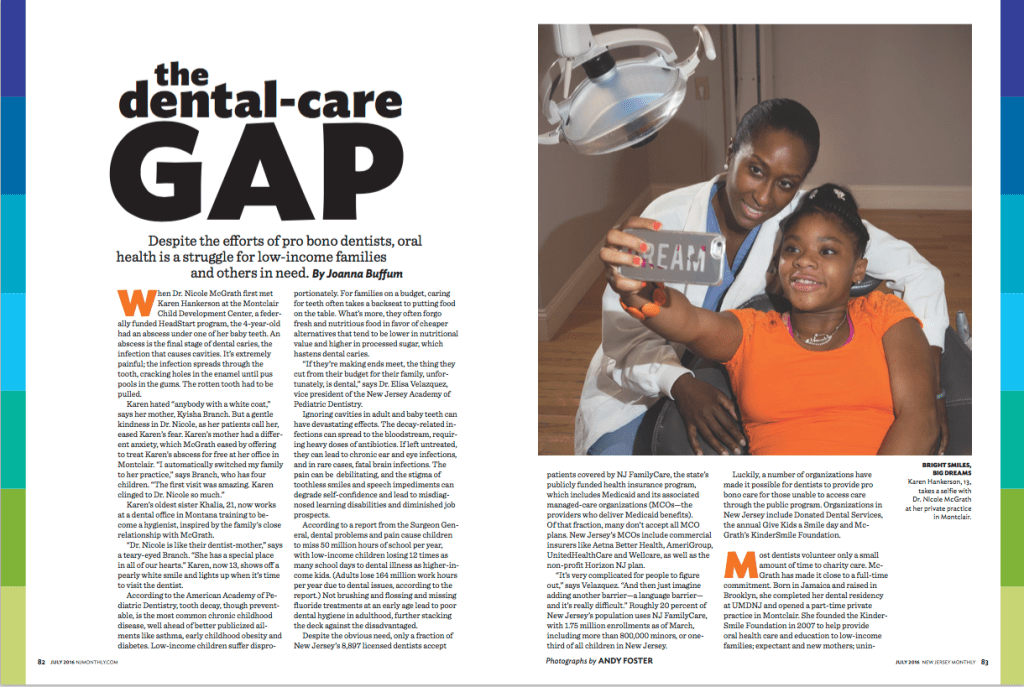 This special report in the July 2016 New Jersey Monthly Top Dentists issue investigated the state’s oral health care gap for low-income families. It also included a side story, For Special Needs Population, Dental Care is a Struggle.
